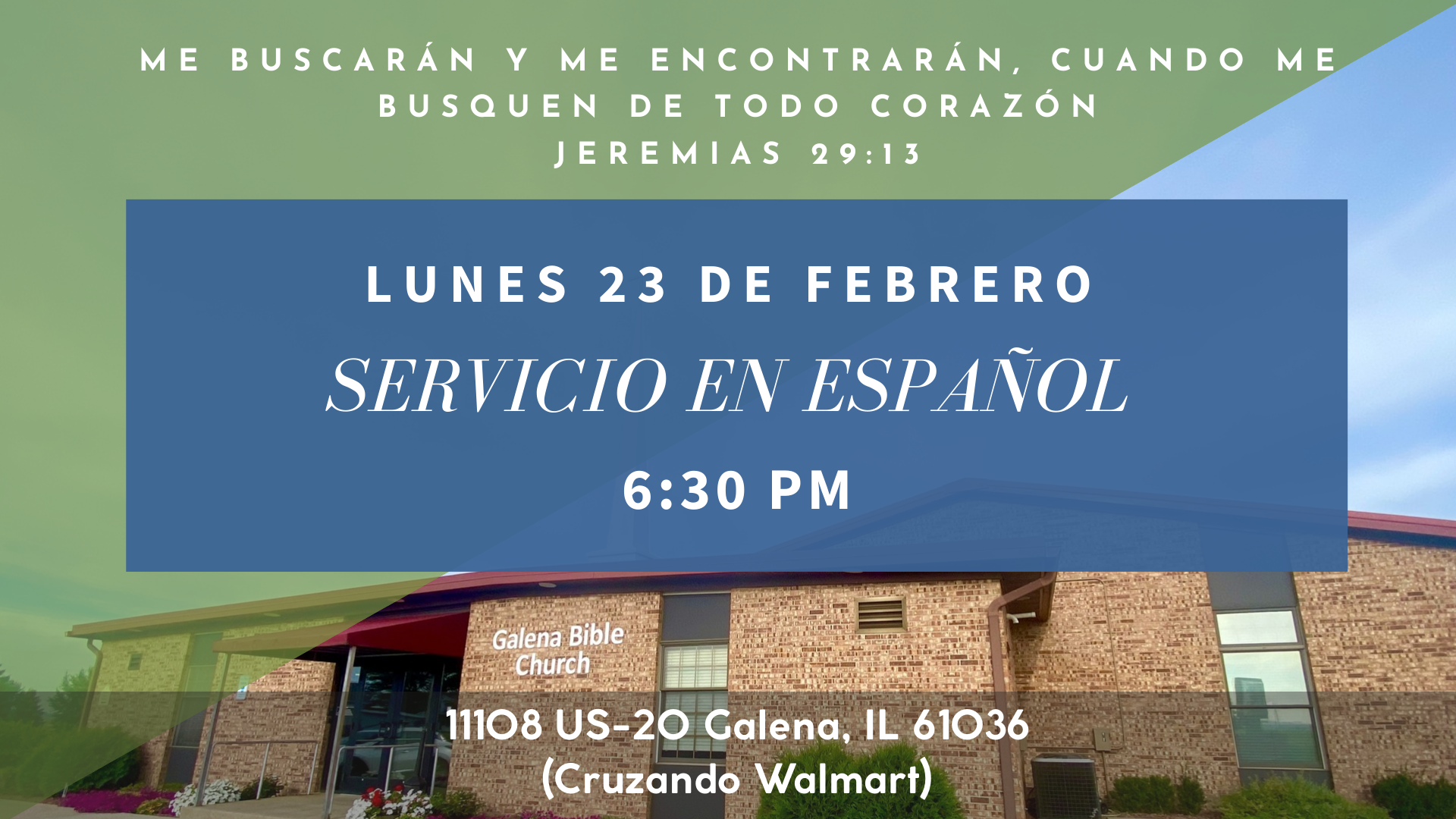 La Iglesia Galena Bible Church existe para proclamar las excelencias de Dios y hacer discípulos de Jesus. El ministerio de español está diseñado para ayudar en esta misión entre la población hispana de nuestra ciudad y las áreas circundantes.